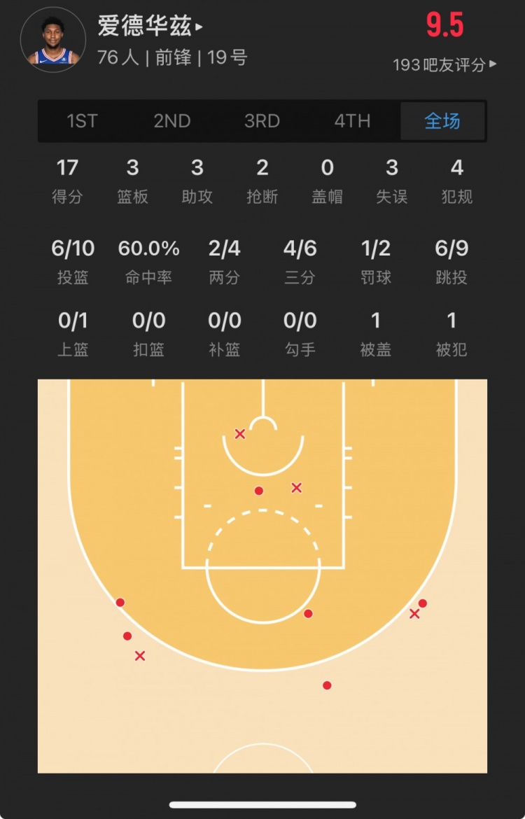 76人落选秀 贾斯汀-爱德华兹 登场35.5分钟