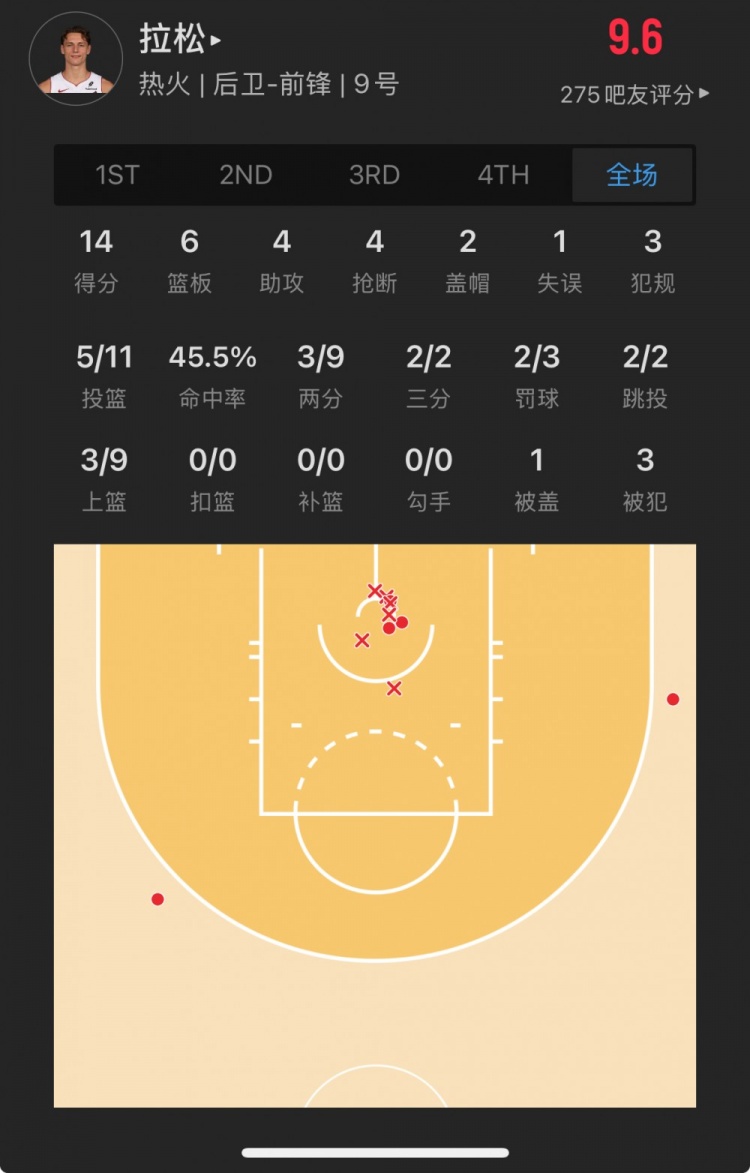 热火44号秀 佩勒-拉松 登场30.0分钟
