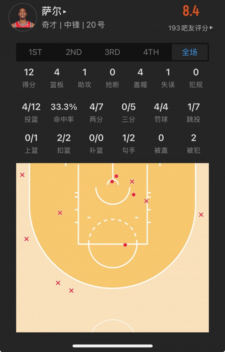 奇才榜眼秀 亚历克斯-萨尔 登场24.7分钟