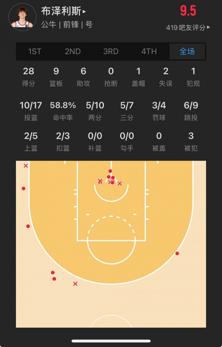 公牛11号秀 马蒂斯-布泽利斯 登场37.6分钟
