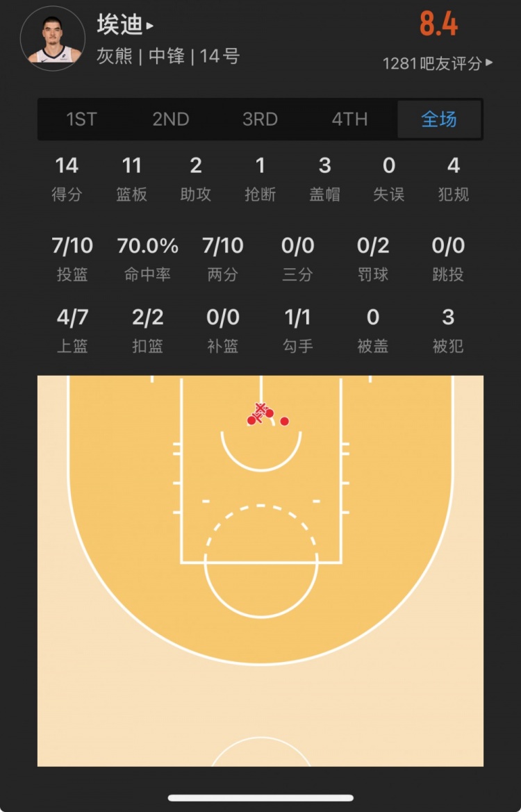 灰熊9号秀 扎克-埃迪 登场26.5分钟