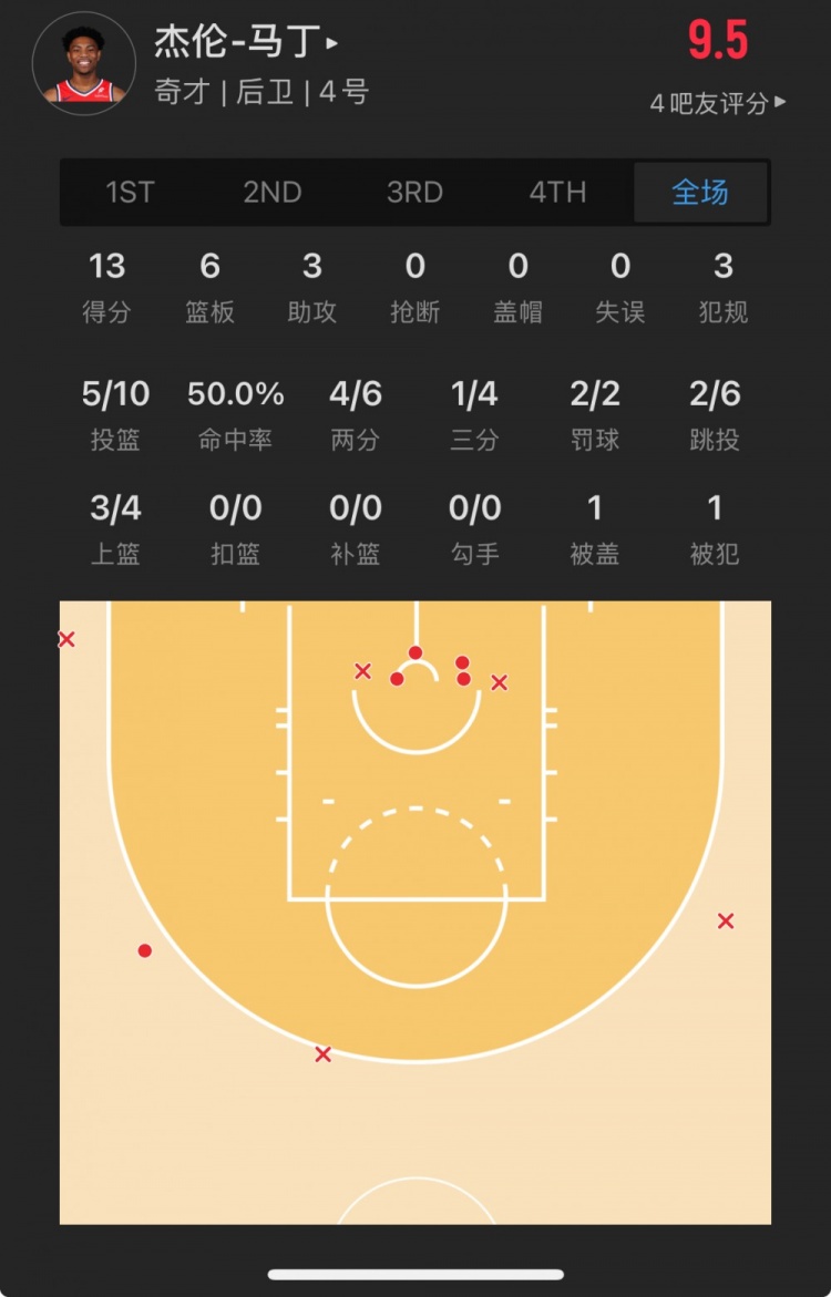 奇才落选秀 杰伦-马丁 登场30.4分钟