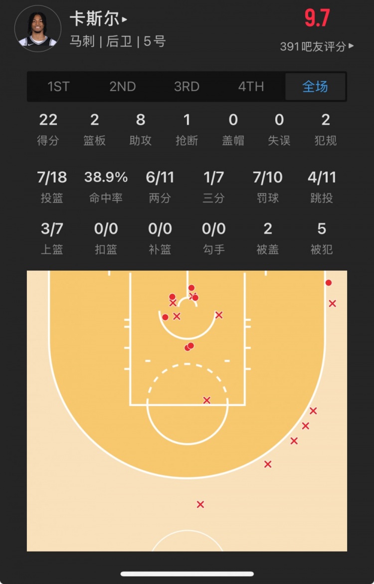 马刺4号秀 斯蒂芬-卡斯尔 登场29.5分钟