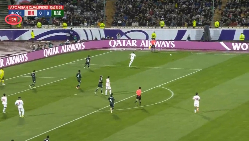 03月21日讯 伊朗vs阿联酋比赛恢复进行!上半场比赛补时29分钟!