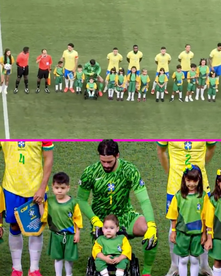 此役阿利森担任巴西队首发门将,他在赛前列队奏国歌时单膝跪地,以照顾身前坐轮椅的球童,避免身高差太大。