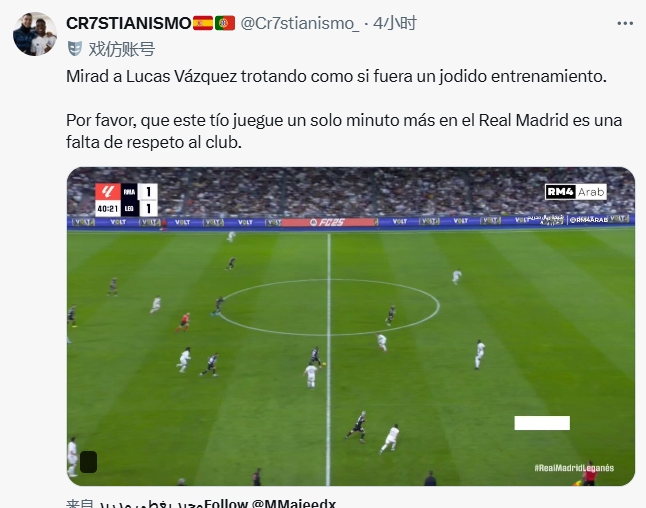 推特上一则吐槽:看看巴斯克斯慢跑的样子,像是TM的训练课。求求了,这货色还能在皇马多踢一分钟都是对俱乐部的侮辱。